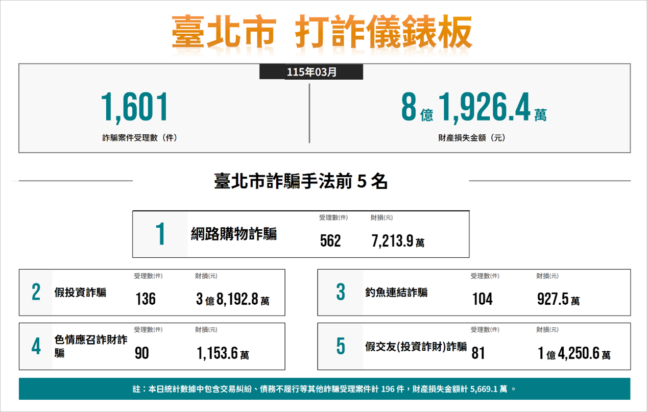 校園公告 公告主旨 打詐臺北隊!!《115年4月反詐宣導》 發佈日期 2026 年 4 月 14 日 發佈單位 學生事務處 公告類別 行政公告 公告等級 重要 點閱次數 52 公告內容 相關附件 【2026-04-14】高雄餐旅大學2026美國馬鈴薯國際餐飲創新技術研習暨廚藝競賽活動 【2026-04-14】安全教育增能研習(永吉國中辦理),歡迎報名。