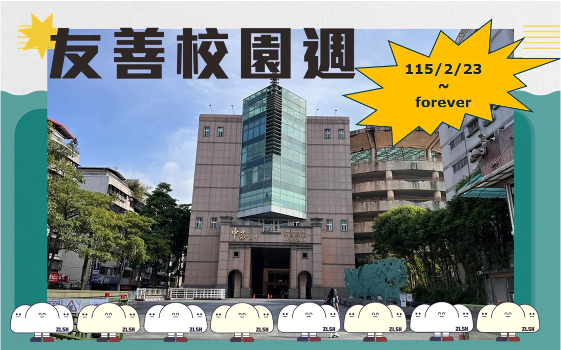校園公告 公告主旨 114-2友善校園週 – 拒絕短影音風險:別被演算法牽著走,思辨、查證、要求助 發佈日期 2026 年 2 月 13 日 發佈單位 生活輔導組 公告類別 行政公告 公告等級 轉知 點閱次數 339 公告內容 相關附件 【2026-02-13】臺北市立中崙高級中學節電規劃與執行成效公告 【2026-02-13】115年度第1次原住民族語言能力認證測驗